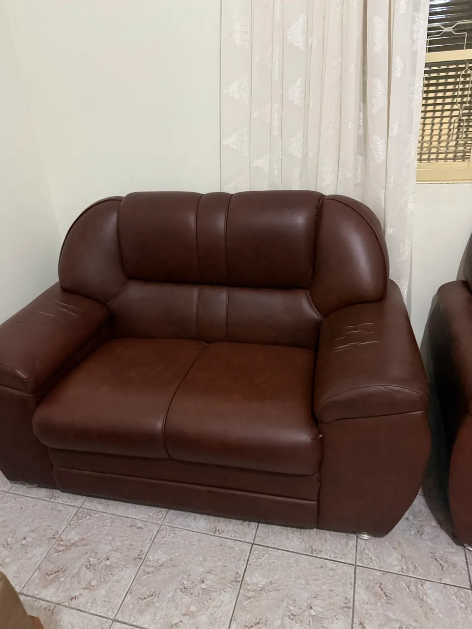 Sofá de couro ecológico perfeito para sua sala! Conforto e elegância em um só móvel. Ideal para acomodar até 5 pessoas, este sofá é a escolha certa para relaxar e receber visitas.