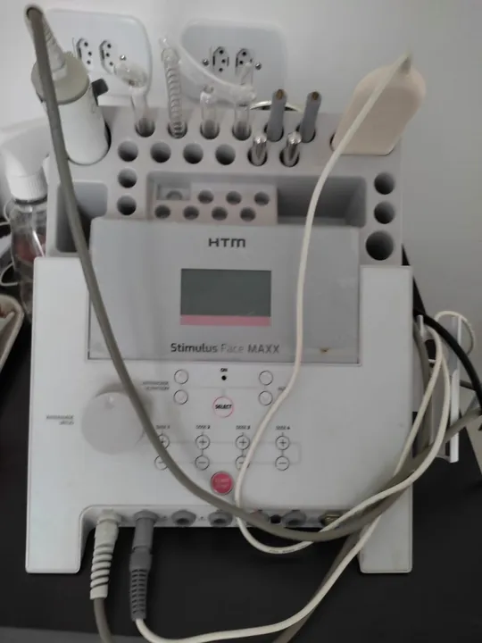 Stimulus face maxx HTM, aparelho multiterapias, corrente high force, corrente russa, corrente balcânica, microgalvanica, corrente MENS, vacuoterapia, peeling ultra-sônico, alta frequência e fototerapia, tem 87 programas para otimização de tratamentos. Equipamento ideal para quem busca começar no ramo de estética.