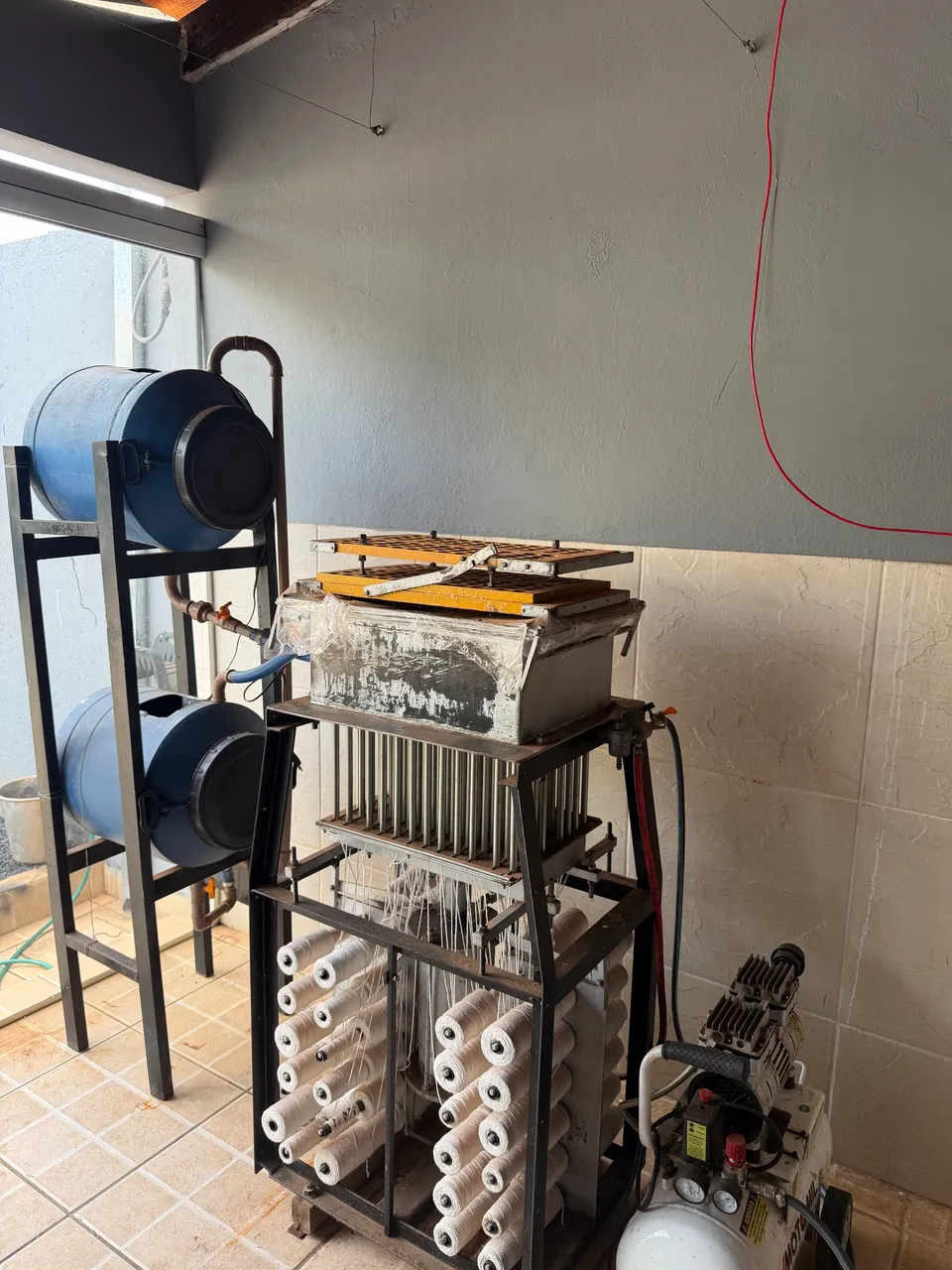 - 01 Máquina de velas palito com 96 formas, refrigerada a água, levantamento pneumático (ar comprimido)da mesa - compressor de ar incluso.