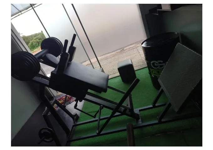 Aparelho de agachamento hack, ideal para fortalecer a musculatura das pernas e glúteos. Proporciona um treino eficiente e seguro, perfeito para sua academia ou espaço de treino pessoal.