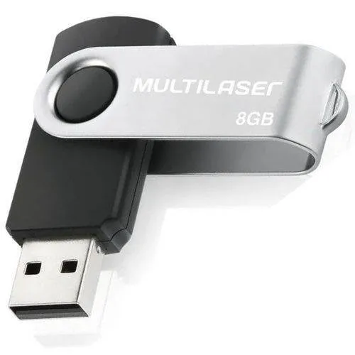 Pen drive Multilaser com capacidade de 8GB para armazenamento e transporte de dados. Design compacto e prático para o dia a dia.