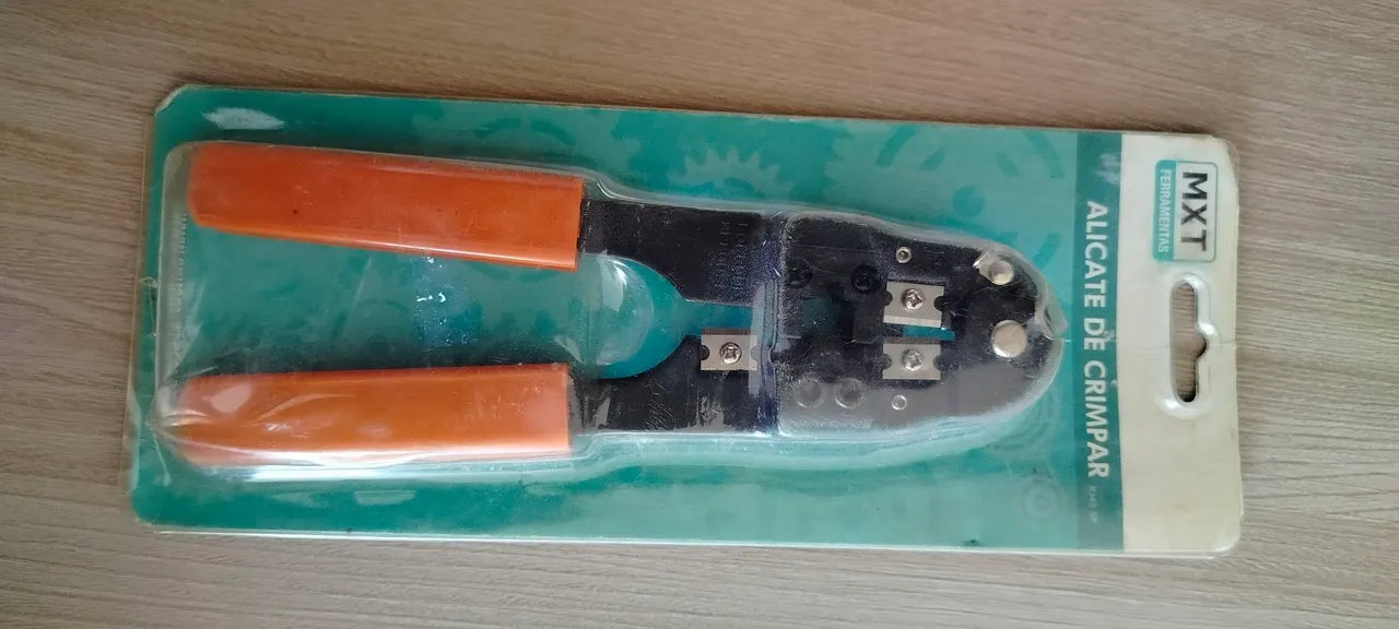 Alicate de crimpar MXT para cabos de rede. Ferramenta essencial para instalações de redes de computadores.
