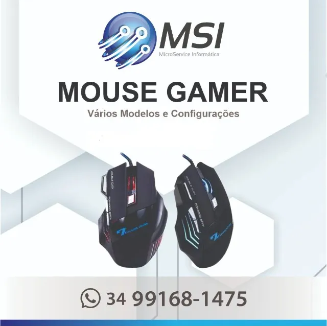 Mouse Gamer de alta performance com design ergonômico e personalizável. Desfrute de precisão e conforto para suas jogatinas. Vários modelos disponíveis!
