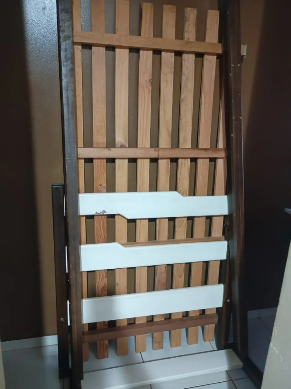 Cama solteiro de madeira, ideal para otimizar espaços. Design funcional e prático.