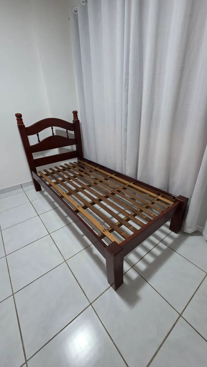 Cama de solteiro em madeira maciça, design clássico e elegante que combina com qualquer ambiente. Durabilidade e conforto garantidos para suas noites de sono.