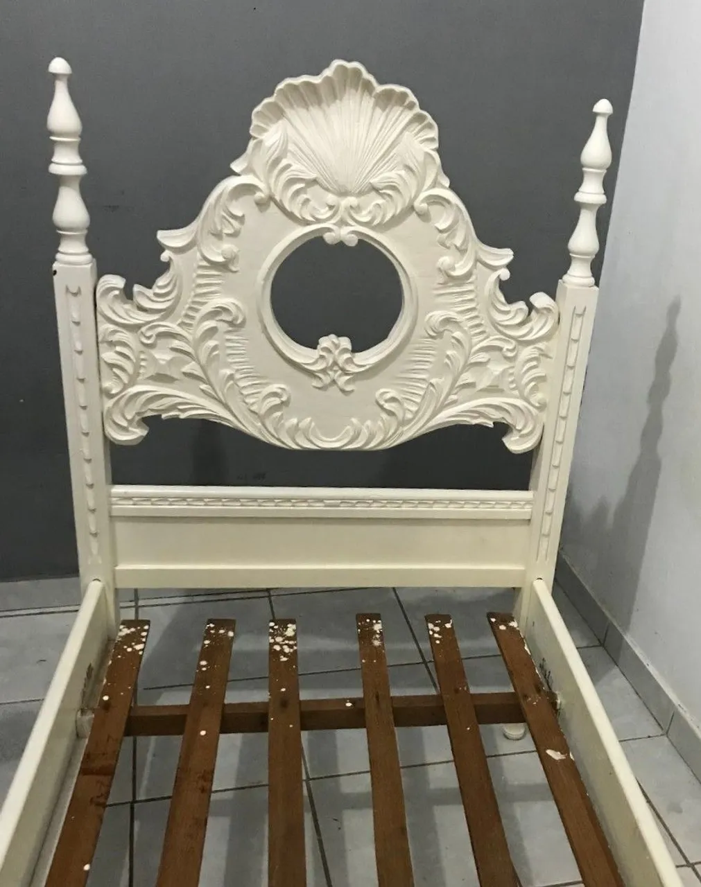 Cama de solteiro em madeira provençal, um clássico que une elegância e conforto. Detalhes esculpidos e design charmoso que transformam o quarto em um refúgio de tranquilidade.