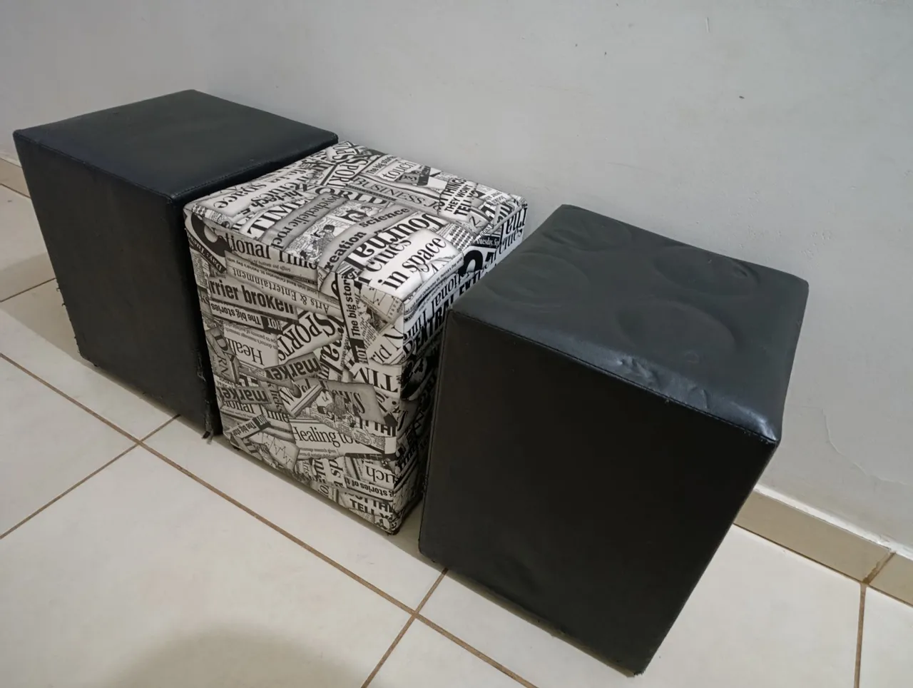 Conjunto de puffs modernos e estilosos, perfeitos para complementar sua sala de estar! Design versátil e confortável, ideal para relaxar e receber visitas.