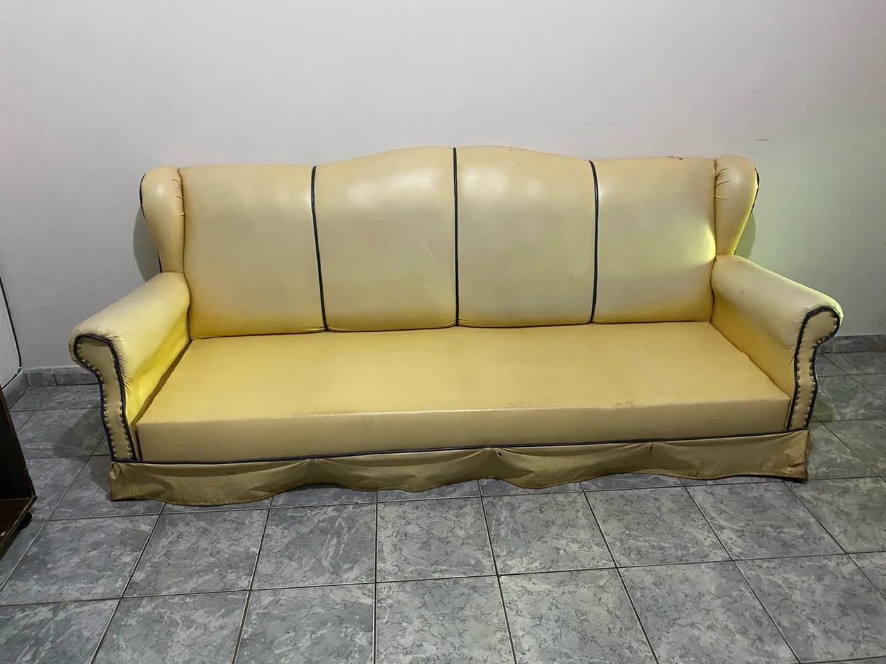 Sofá Clássico Amarelo 3 Lugares