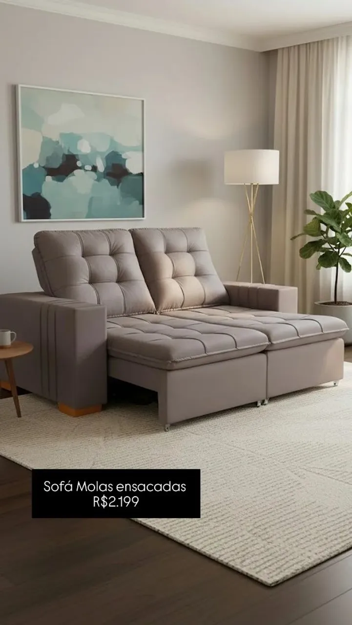 Desfrute do máximo conforto e elegância com este sofá de molas ensacadas! Design moderno, assentos espaçosos e encosto reclinável para relaxar. Perfeito para sua sala!