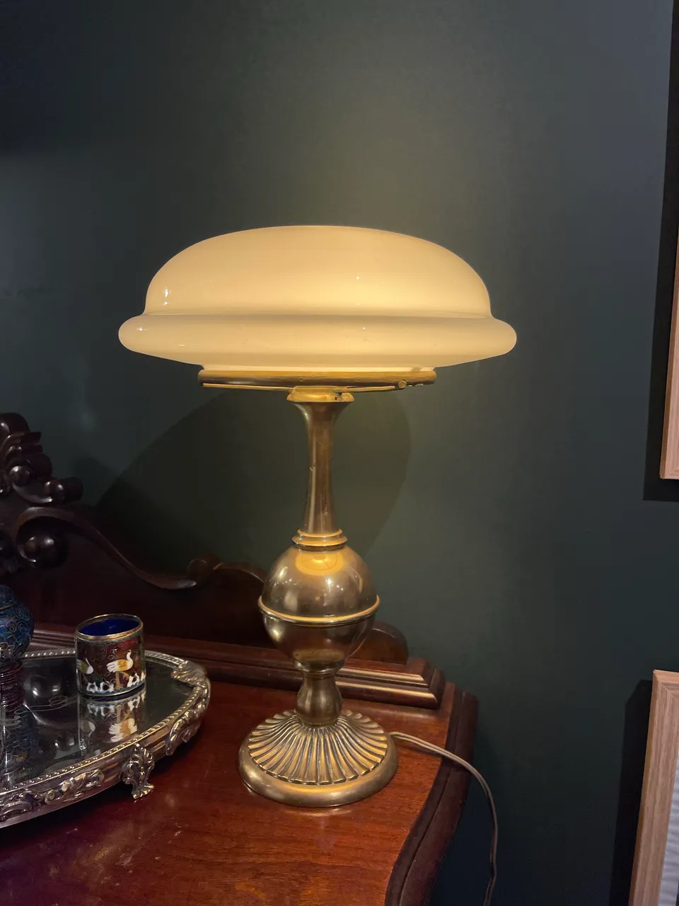 Lindo abajur em bronze e opalina, ideal para criar um ambiente acolhedor e sofisticado. Design clássico e elegante que combina com diversos estilos de decoração, proporcionando uma iluminação suave e agradável.
